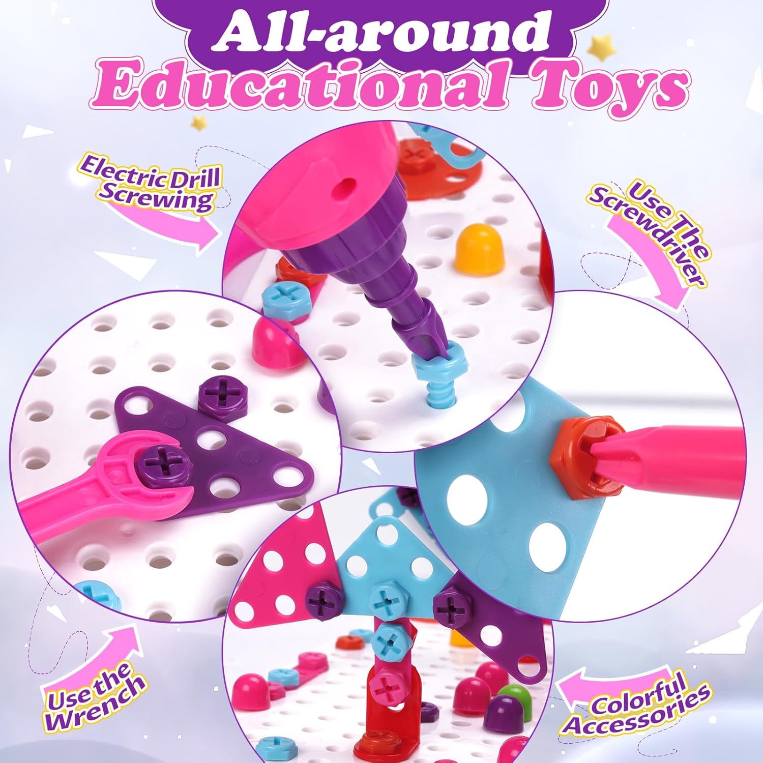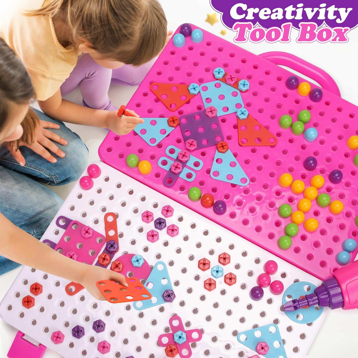 - 【STEM Educational Toys】The Mosaic Electric Drill Puzzle incorporates STEM concepts and is highly educational. Children are challenged every day to build as many multidimensional projects as possible, and this kit inspires multiple avenues of learning fun and enables children to better design and drill. It adds creative and artistic elements, which not only exercises children's hand-eye coordination, but also a concentration and dexterity training, promoting the overall development of imagination, creativity, and exploratory thinking skills.