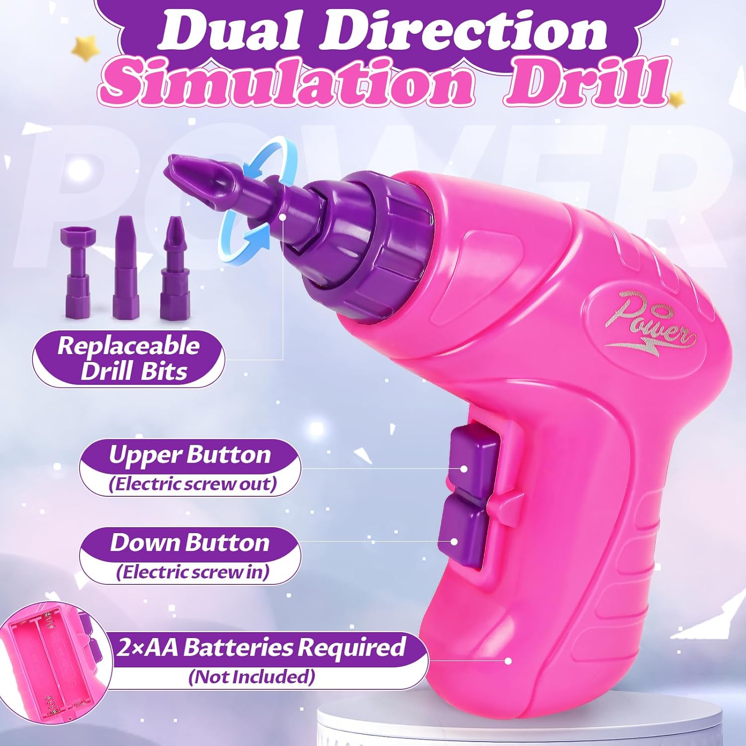 - 【Magic Drill】Our electric drill is battery-powered, rotates safely and makes simulated sounds, comes with 3 interchangeable bits and works with other tools, making the process of building and making more fun for your child, designing small 2D or 3D art scenes at will through your imagination.