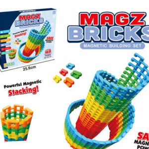 Magz-Bricks is a fun magnetic building set consisting of magnetized blocks of the same shape and different colors. The blocks can be stacked and built up by magnetic interlocking. You can build unlimited shapes and designs by using several pieces.You can build unlimited shapes and designs by using different configurations. Stacking is fast and almost effortless. This, along with the vivid colors and strong magnetic force make this toy fun and exciting. Some images require more pieces than one set. The blocks measure 2.3″ x 0.8″ x 0.6″