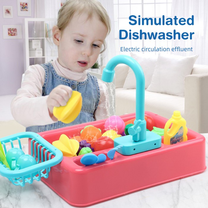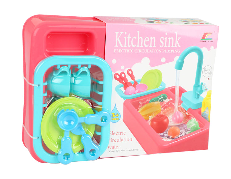 Wash-up Kitchen Sink Children Kitchen Dish Washing Sink Toy Electric Water Circulation Toy dishwasher Gift Real Water Flow Sink Learn with fun with plastic vegitables and dishes Note :- This Video its just for explain how product work.its not a real video of product we send you a product as show on picture not on video . With this Battery-Operated Play Sink, kids can wash dishes with real running water! Fill the tub under the sink with water, turn the knob and watch water flow through the faucet just like a real sink. The water runs down the drain and back into the tub to cycle over and over again. Includes dishes, utensils and play dish soap. This kitchen sink playset is a great way to give your children the space to learn how important it is to wash and clean up after themselves. They are able to learn key skills through play along with understanding the benefits of cleaning. Great built-in water features and a variety of accessories will keep your little one entertained for hours! You can also fill the water basin as many times as you like, as the water faucet uses the water in the sink to come through the faucet – making this set environmentally friendly and safe for your child. A washing and drying space gives your child a realistic idea of what it is like to wash up. A great way to interact with your child and have fun!