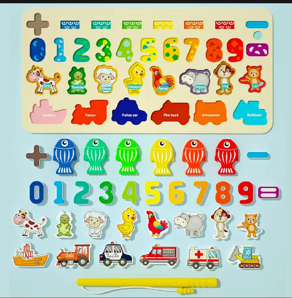 Magnetic fishing board game 4in1 from Wisher Toy comes with matching games, puzzles, numbers, animals, vehicles, Science Logic Board, great value!! Can be played in a variety of ways, fun to play, gain knowledge, and enhance your child’s development. The product is made of good quality plastic, strong, durable, beautiful, has no sharp edges and has a smooth surface for the safety of children in the preschool education stage. Suitable for gifts The best souvenir.