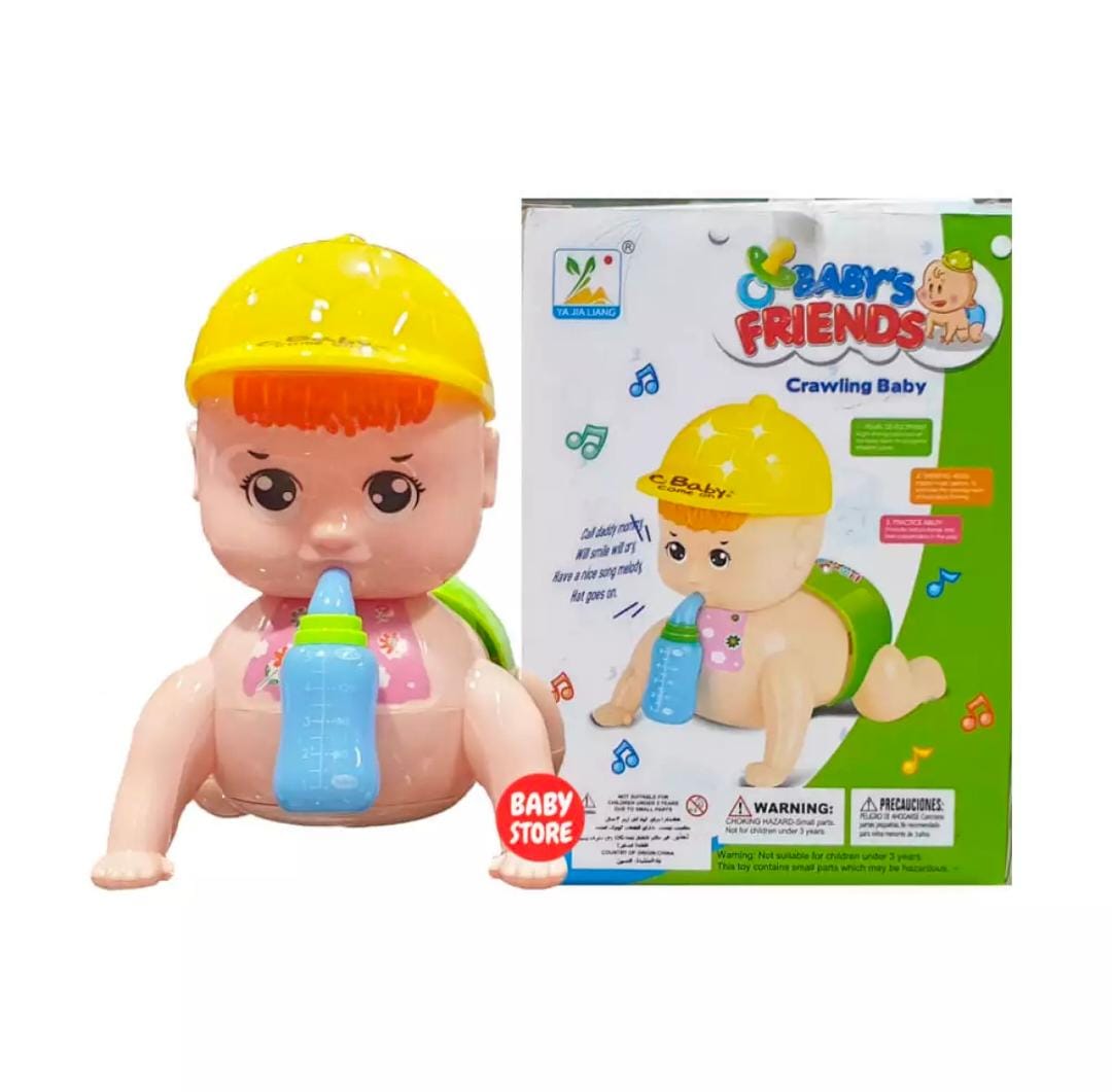 The toy crawls like a baby with music and lights. It feels like a baby laughing and crying. Hand