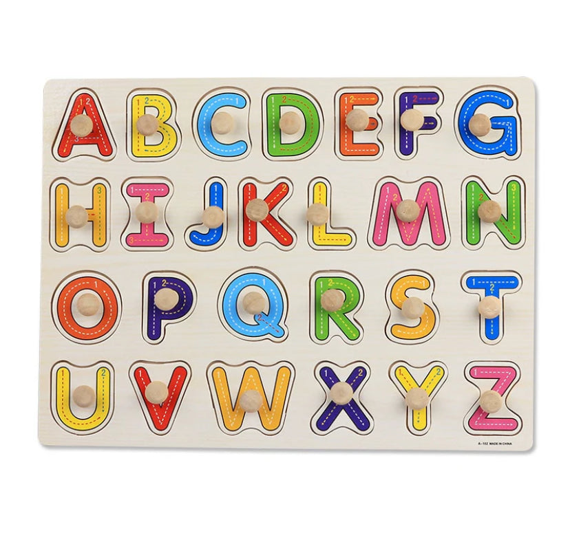 • Knobs on each letter for easy gripping, perfect for little hands to develop fine motor skills.